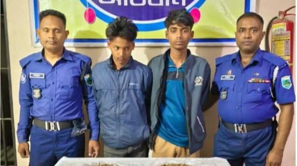 রাসেল আহম্মেদ, শিবগঞ্জ, বগুড়াঃ বগুড়ার শিবগঞ্জ উপজেলার মোকামতলা পুলিশ তদন্ত কেন্দ্রের চৌকস আভিযানিক দল পুনরায় তাদের কর্মদক্ষতা ও জননিরাপত্তায় আপসহীন অবস্থানের প্রমাণ দিয়েছে। সোমবার এক বিশেষ অভিযানে ৩ কেজি ৭০০ গ্রাম গাঁজাসহ ২ মাদক কারবারিকে হাতেনাতে গ্রেফতার