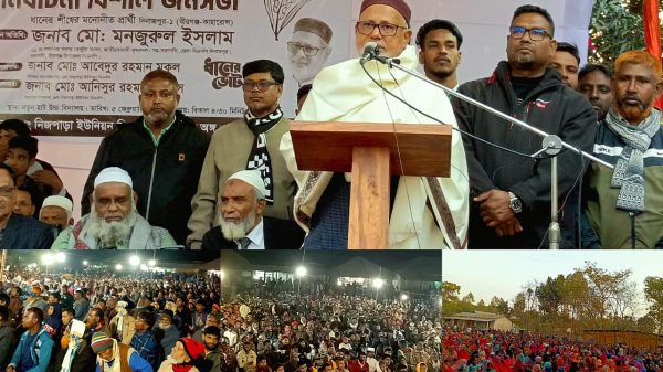 মোঃ ফিরোজ আহমেদ, মোরেলগঞ্জ, বাগেরহাটঃ ন্যায়, ইনসাফ ও বৈষম্যহীন রাষ্ট্রব্যবস্থা প্রতিষ্ঠার দৃঢ় অঙ্গীকার পুনর্ব্যক্ত করে দাঁড়িপাল্লা প্রতীকে ভোট দিয়ে বিজয় নিশ্চিত করার জন্য বাগেরহাট-৪ (মোরেলগঞ–শরণখোলা) আসনের ভোটারদের read more